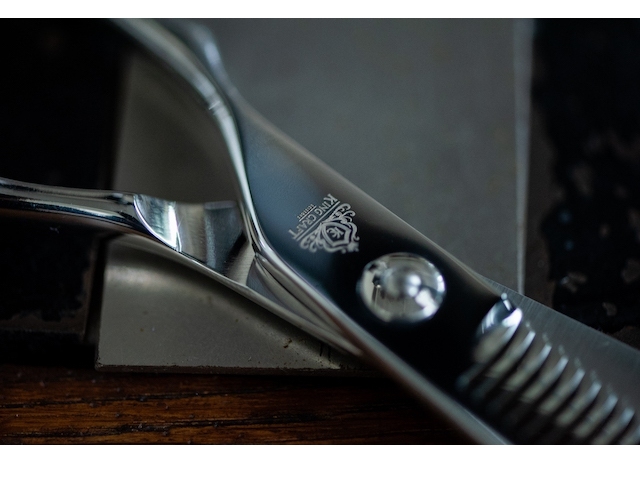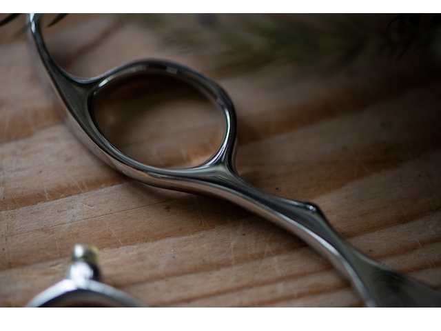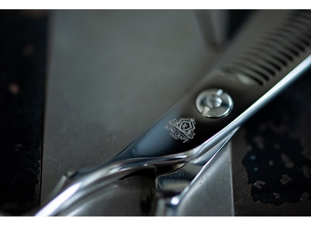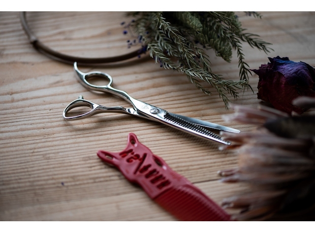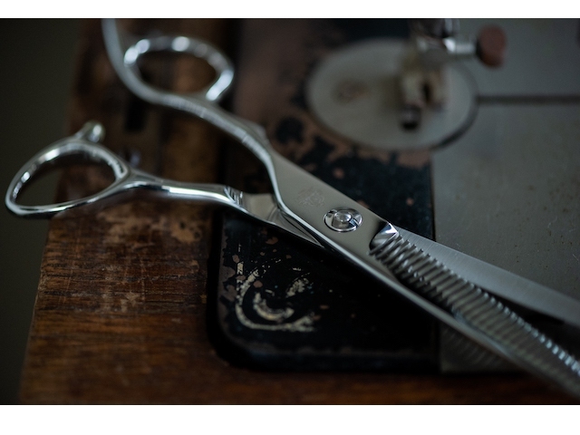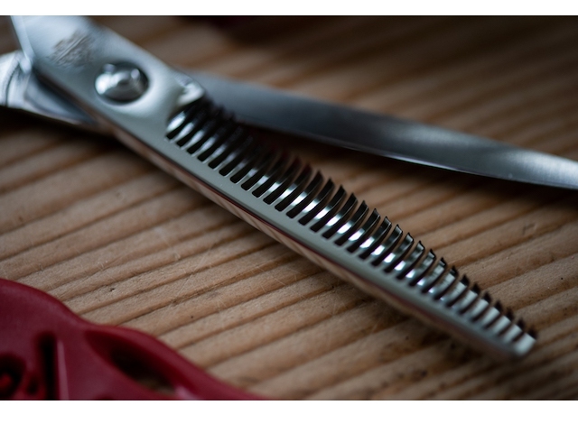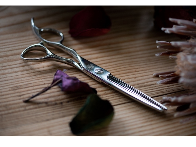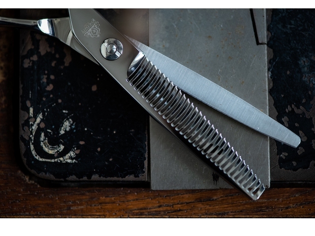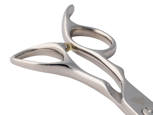 『立体ハンドルと2段刃構造で、疲れにくくカットスピードがアップする、左利き用セニングシザーです!!』