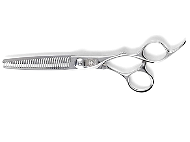 『切る角度によってカット率が変わる、1つで2役のセニングシザーです!!』