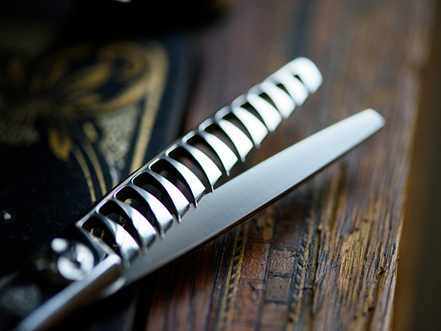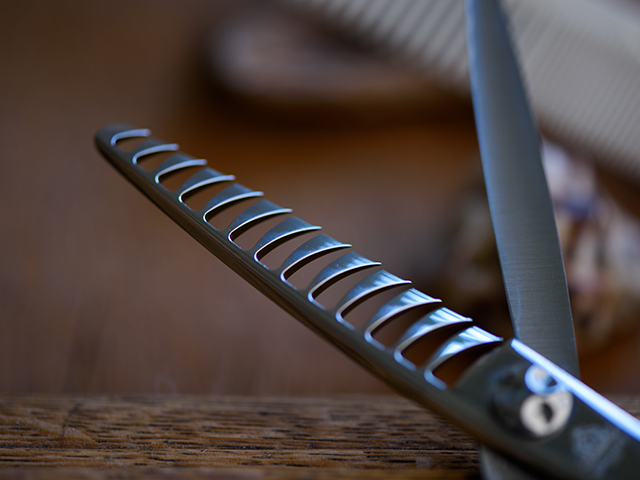 尚且つ棒刃の刃線の曲線により髪を逃がしながらのカットが可能です。
