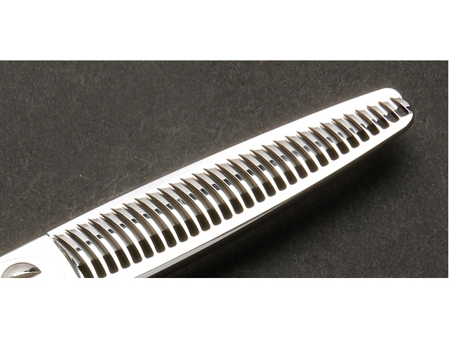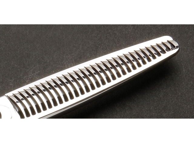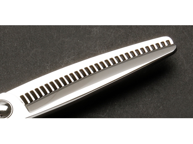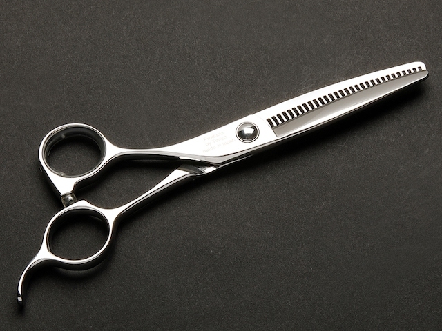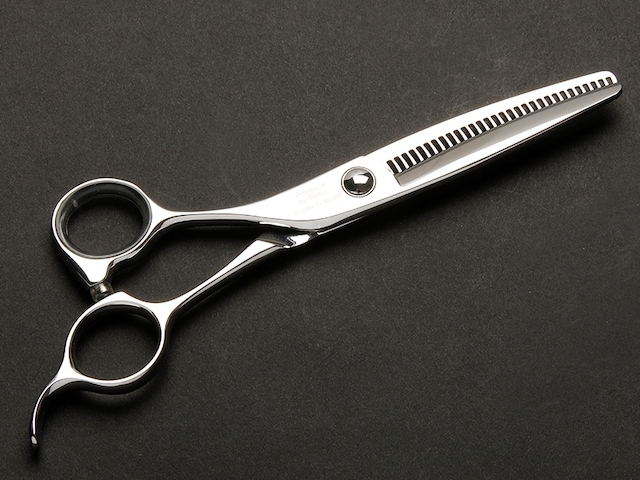 『クシ刃先端のR刃加工で毛先を逃さずカットできる、左利き用セニングシザーズです!!』