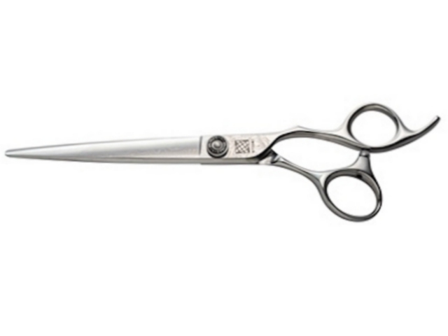 『ダマスカス鋼による唯一無二の紋様が美しく、スタイリッシュなシザー!!柔らかい切れ味でカットできます。』