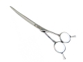 "柔らかく逃げる被毛や、目元や目尻の濡れた毛も逃さず切れる。極細ボディで細部のデザインも思い通りにカットできるカーブシザー"