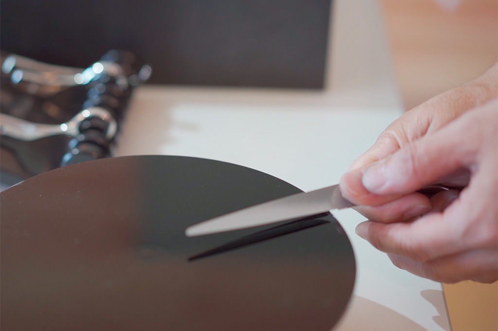 包丁と理美容シザーの決定的な違いをご存知でしょうか。包丁は「線」で押し切りますが、シザーは2枚の刃が交差する「微小な点」の移動によって髪の毛を断ち切っています。