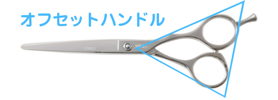 オフセットハンドルは、親指穴が下がっている形状です。比較的自然な手の位置を取りやすく、肘が上がりにくいため、長時間のカットでも負担を感じにくい人が多いです。