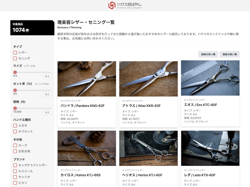 シザー選びで迷ったら、まずは商品一覧から候補を絞り、可能なら店舗に出向き試し切りで比較してみてください。